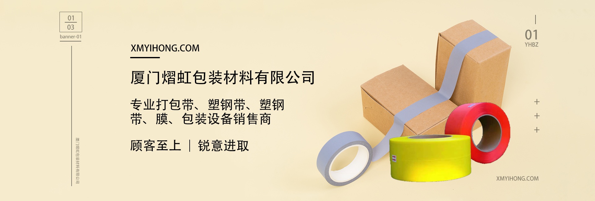 廈門熠虹包裝材料有限公司,是一家綜合性的新型包裝材料有限公司,公司坐落于廈門市集美中心區。 廈門熠虹包裝材料有限公司多年來始終堅持以“創新為先、服備為誠、信譽為重,管理為本”為企業核心價值,我們致力于為企業后道包裝提供質優價廉的產品服務而努力。 公司創始人從事包裝行業15年,具有豐富的經驗及創新理念,公司擁有先進的生產設備和自動流水線作業,專注于后道包裝設備與包裝材料PET、PP、PE、POF、膠帶等塑膠類包裝材料。經過不懈努力,更是研發出了耗能更低,用工更少,產量更高的生產線和包裝產品。中高端產品均通過SGS環保體系檢測、SGS質量檢測。打包帶日產量10噸,纏繞膜月產量150噸,膠帶年產量在3萬件以上。 為提供各地區客戶的快速便捷的售后服務,我司在漳州,泉州,莆田,廣 州,惠州,昆山,上海,山東等地都設有報務點,在全體同仁的不懈努力下,產品深受廣大用戶好評。我們也將一如既往地追求卓越的品質、優質的服務,與廣大合作伙伴,攜手共創美好未來! 品牌主要有:打包帶系列,塑鋼帶系列,膠帶系列,膜系列,包裝設備系列等高端技術行業。 本公司不但有品牌質量的保證,同時具有市場主導競爭優勢,與廣大企業客戶建立了良好穩定的合作關系。我們的專業膠帶技術讓您的產品性能最優化,增進其產品形象,更具有競爭力,也是您降低制造成本的最佳伙伴。 我司竭誠希望與更多的廠商、貿易公司建立良好的合作關系,持續為客戶創造最大價值。 公司秉承“顧客至上,銳意進取”的經營理念,堅持“客戶第一”的原則為廣大客戶提供優質的服務。歡迎惠顧!